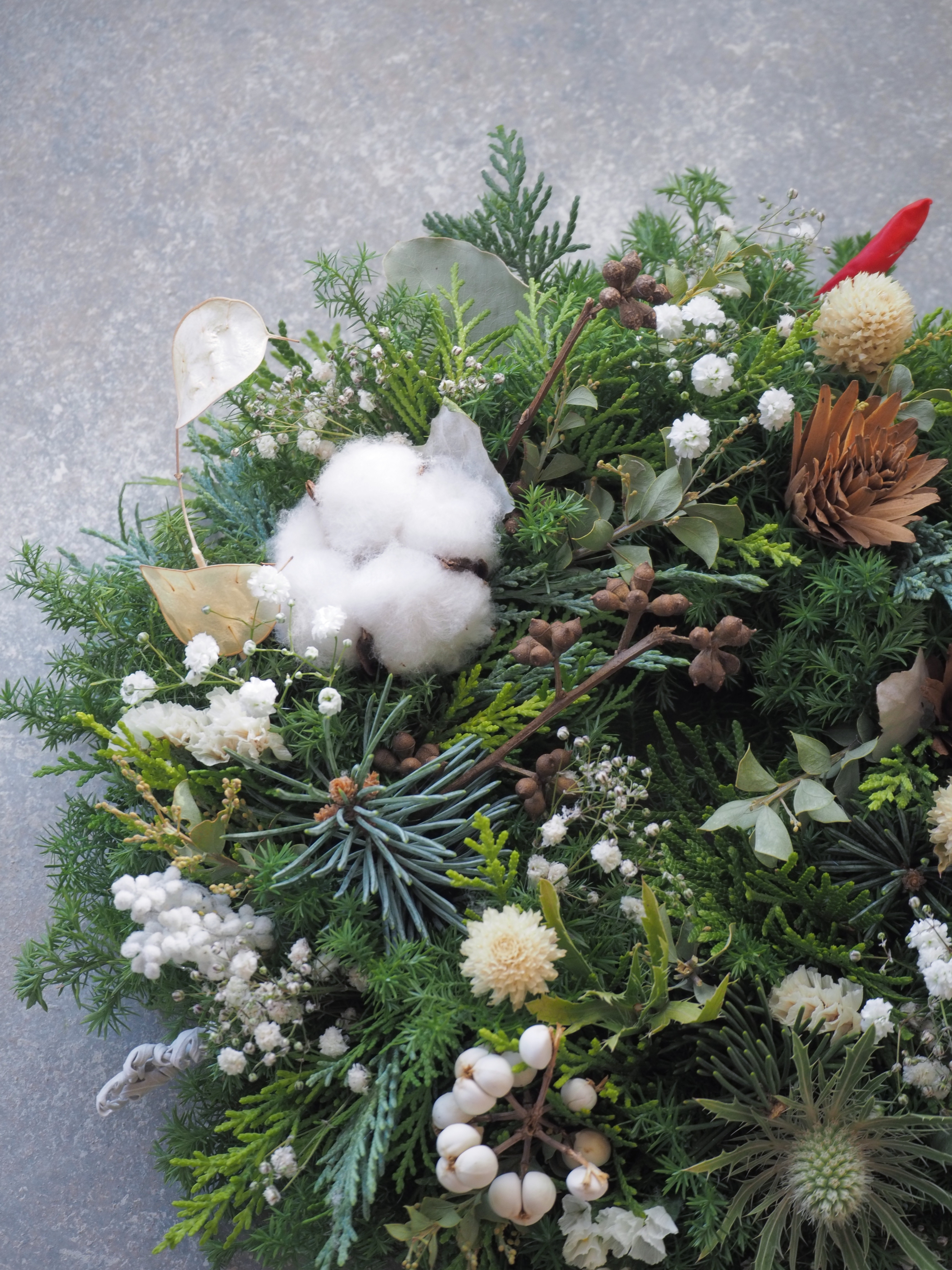 クリスマスリース 「冬の白、いろいろ。 」 植物生活×フローリスト 植物生活編集部 29ヶ月前 とことん見せます! クリスマスリース 「冬の白、いろいろ。 」 今年のクリスマスリースのデザインは決まりましたか? 同じものが一つとない花屋の白) 布の三つ編みクリスマスリースです。 「クリスマスをもっと楽しく! もっと素敵に! 」したくて、アメリカから輸入したクリスマス柄の生地をこだわって選び3色編み込んで製作しました。 グリーン系の色を選んで、大人のクリスマスリースが
